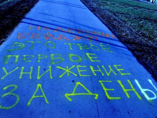 Рядом с СПбГУП появились «бунтарские» надписи на асфальте