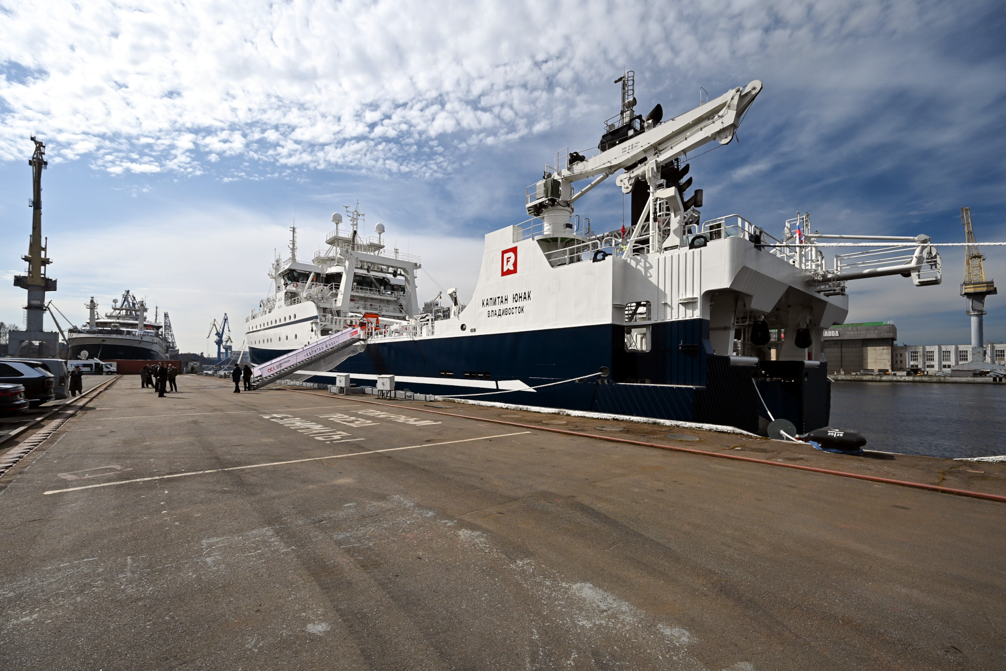 Флаг и рыба. В Петербурге представили большой траулер «Капитан Юнак»
